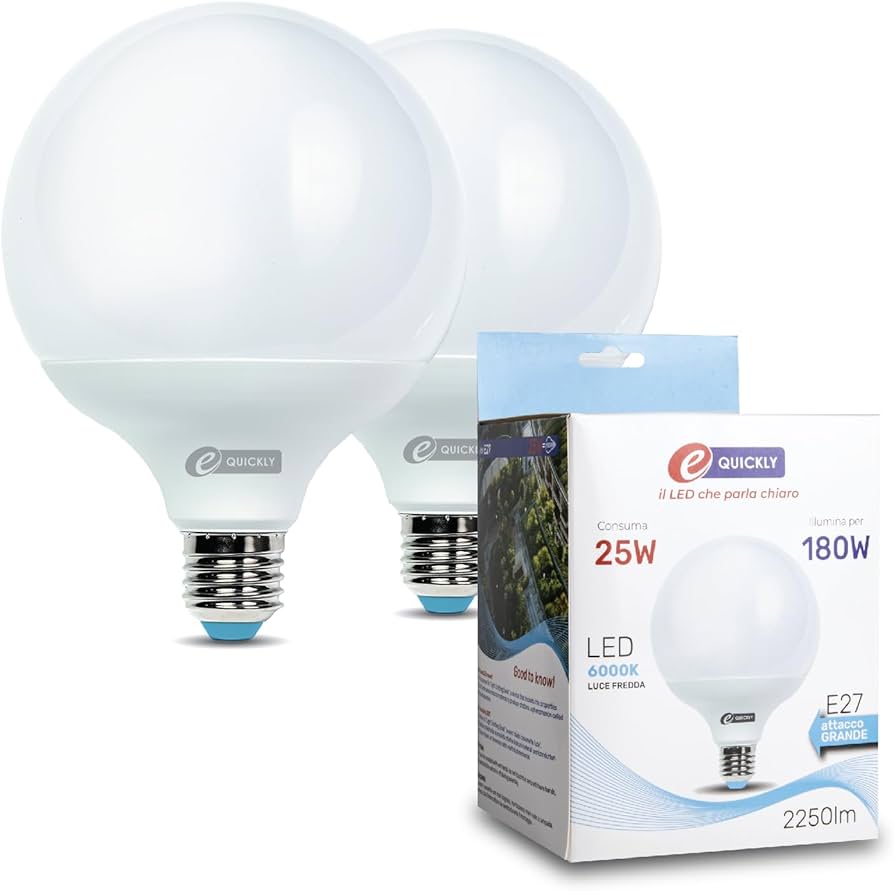 Aggiungi al carrelloLAMPADA PALLA LED LUCE FREDDA E27 25W 6000K